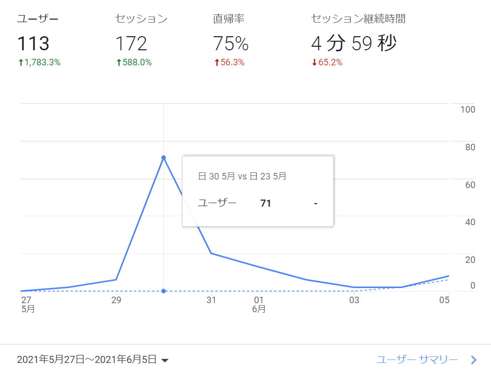 - ブログを書いた日は数件の訪問がある程度でした。